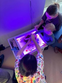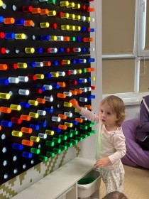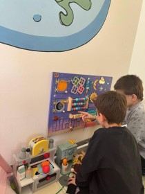 У кімнаті проводять індивідуальні та групові заняття з фахівцями, які допомагають дітям навчитися орієнтуватися у просторі, розвивати дрібну моторику і соціальні навички.
